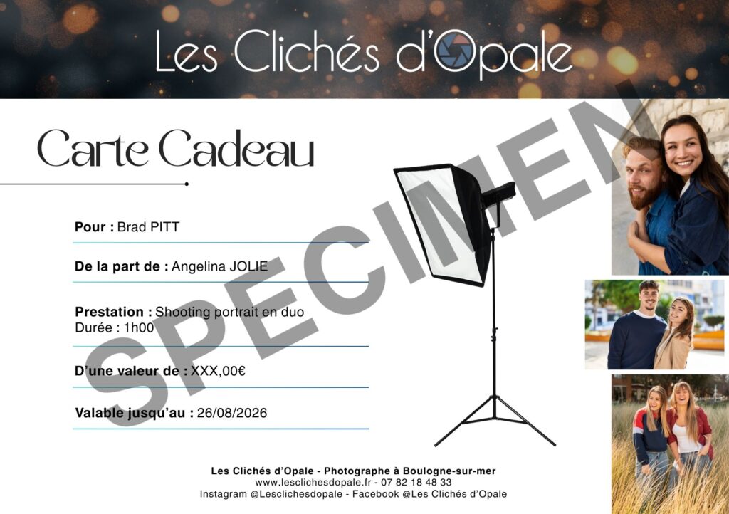 Je vous propose d’offrir à la personne de votre choix une carte cadeau pour une séance photo :